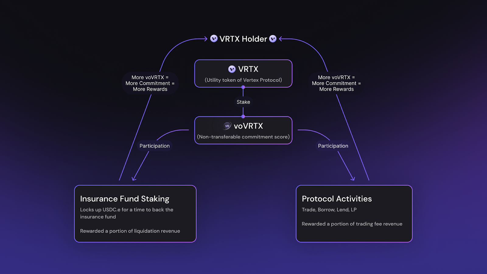 Le staking VRTX est également encouragé par l’équipe du projet, car il contribue à la croissance durable de Vertex Protocol. En plaçant leurs VRTX en staking, les utilisateurs obtiennent des voVRTX. Ces derniers représentent un “score utilisateur” non négociable qui reflète l’engagement à long terme d’un utilisateur vis-à-vis de la plateforme.