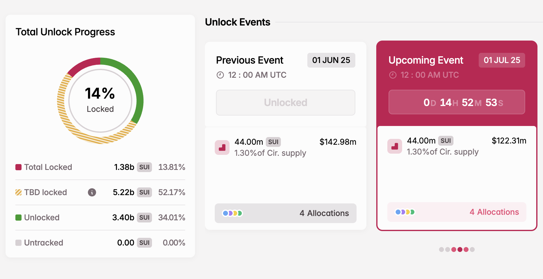 - Nombre de jetons à débloquer : 44 millions de SUI (0,44 % de l’offre totale)