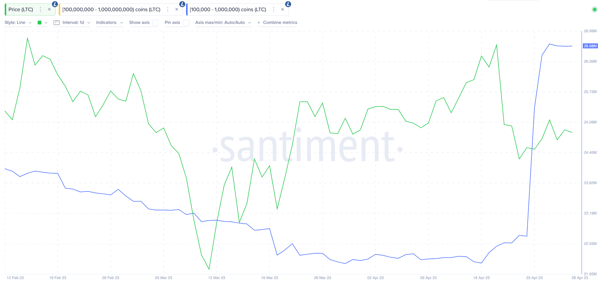 Afin de tirer parti de cet événement majeur, les baleines ont misé très gros sur la crypto LTC. Entre le 20 et le 28 avril, les whales détenant 100 000 à un million de LTC ont ajouté 4,53 millions supplémentaires à leurs portefeuilles.