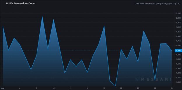 Enfin, BUSD a réalisé un volume on-chain ajusté de 21 milliards de dollars ( 50 561 transactions) en août, ce qui correspond à 2 % du volume total.