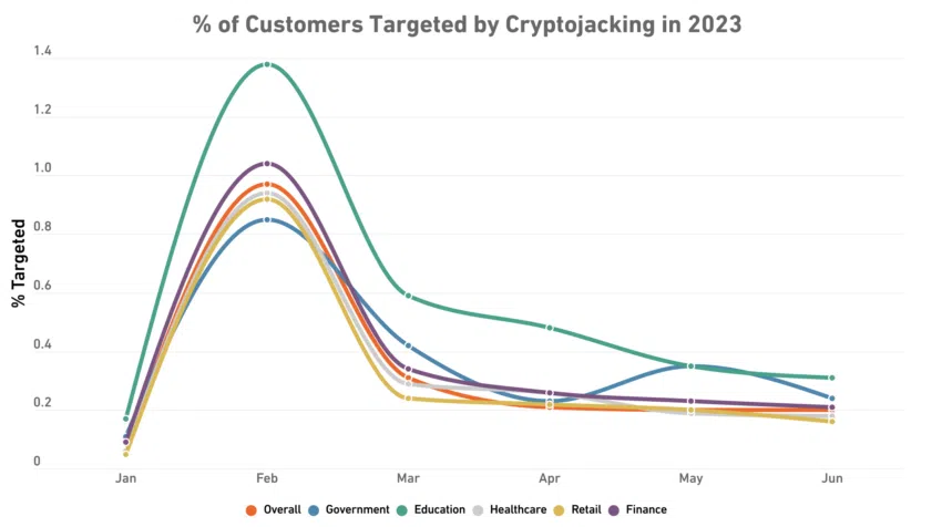 Près d’un quart des attaques de cryptojacking se sont produites en janvier, février, avril et mai de cette année.