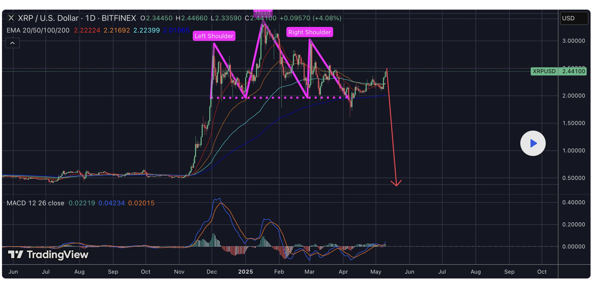 Mais attention au contre-pied. D’autres voix alertent sur un risque de “double fakeout” en formation de tête-épaules. Un piège classique, qui pourrait piéger les haussiers avant une chute brutale du marché. La projection est radicale : un krach de 1 à 2 semaines, ramenant XRP sous la barre du dollar. Dans ce contexte, la prudence reste de mise. Car si le bullrun est bien enclenché, le marché crypto n’a jamais cessé d’aimer surprendre.