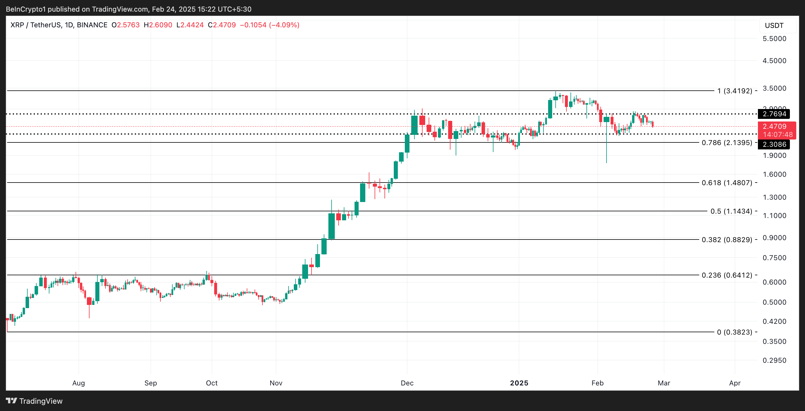 Depuis le début du mois de février, l’équilibre relatif entre la pression d’achat et de vente a maintenu le cours du XRP dans une fourchette étroite. L’altcoin a ainsi rencontré une résistance majeure à 2,76 $ et a trouvé un support haussier à 2,30 $