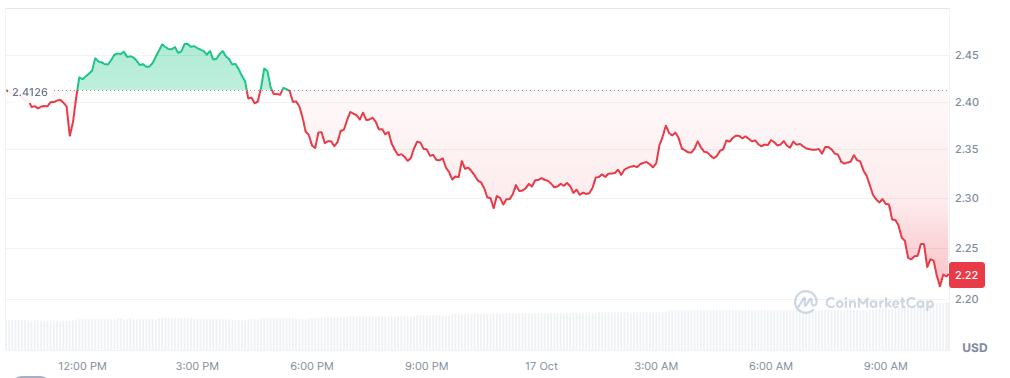 Les indicateurs techniques confirment cette dynamique baissière. L’altcoin est passé sous son niveau de retracement de Fibonacci à 2,52 $ et sa moyenne mobile à 30 jours de 2,83 $.